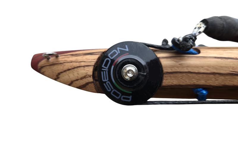 - Asta Poseidon in acciaio inox brunito da 6,5mm, con pinnette e pinna di precarica, dotata di filettatura per arpione o fiocina.